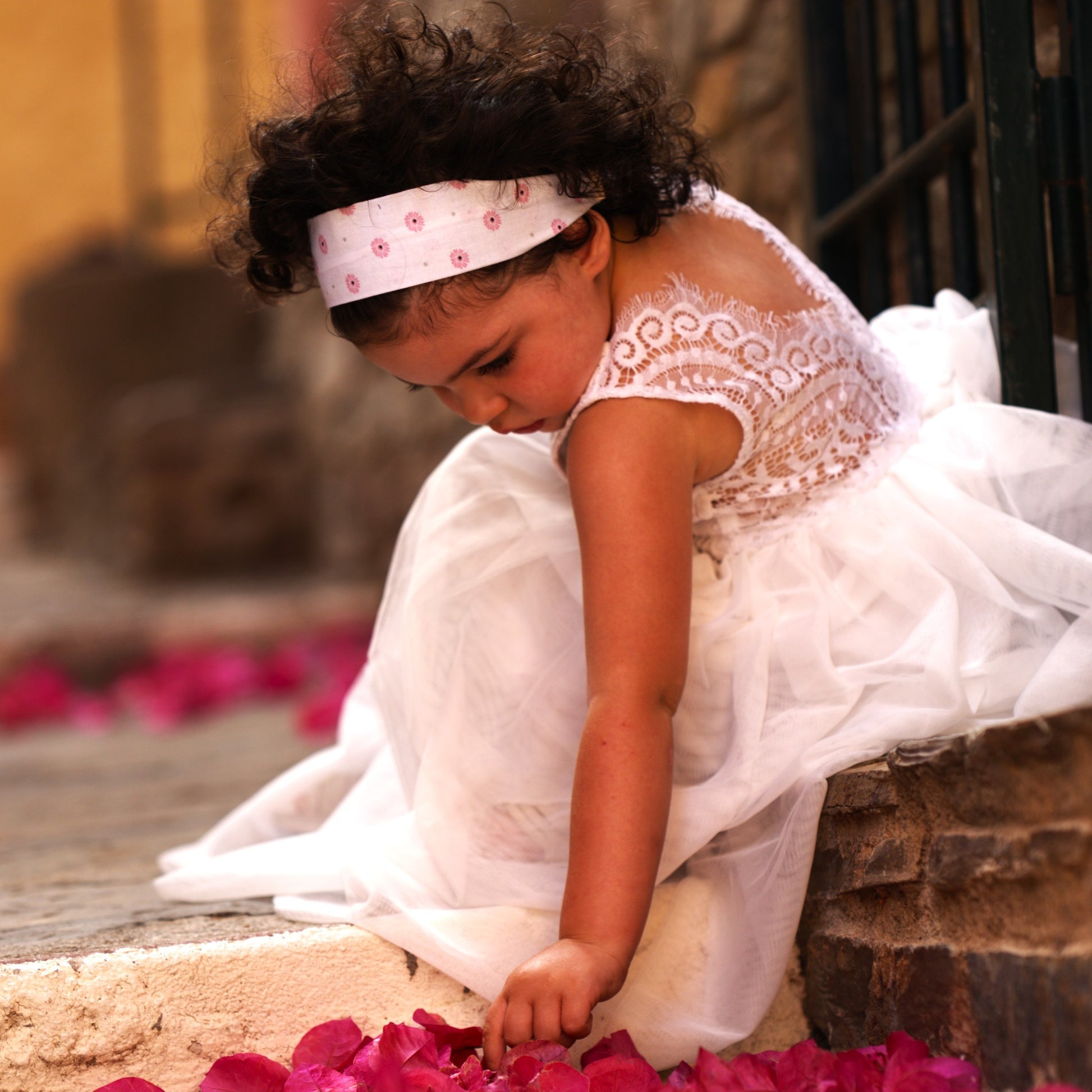 Confectionné à la main à partir de chute de tissu, ce bandeau "Romy" est né d’un travail artisanal minutieux. Il fera le bonheur de vos petites princesses.