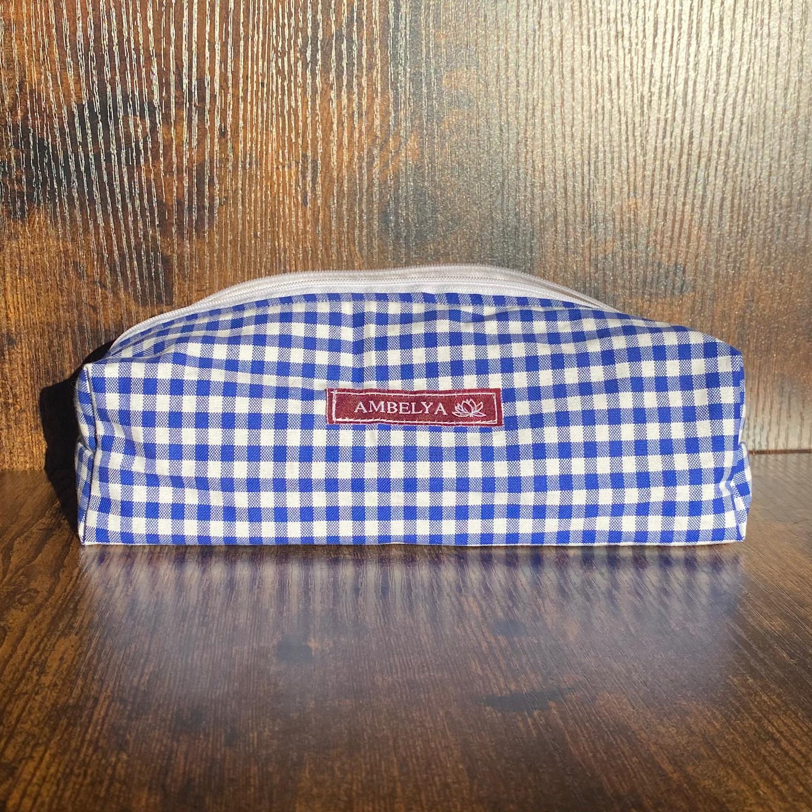 Offrez un cadeau à la fois pratique, raffiné et artisanal avec ce coffret spécialement conçu pour homme. Entièrement coordonné autour d’un motif vichy bleu, il se compose d’une trousse, d’une housse de livre et de cinq cotons réutilisables.